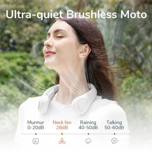 Stay hands-free and comfortable with the ergonomic neck fan design, perfect for hot weather